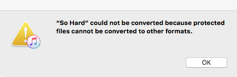 ただし、Apple Musicの楽曲を変換しようとすると、以下の通知が表示されます:
