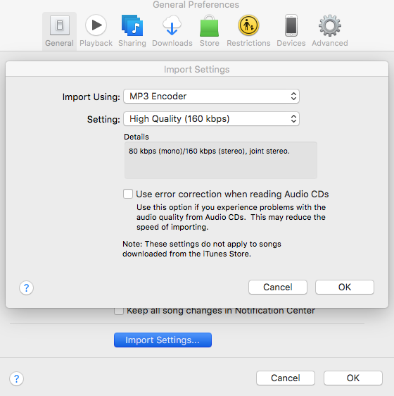 iTunesウィンドウの上部にあるメニューバーから、「編集」 > 「環境設定」を選択します。 - 全般]タブをクリックし、ウィンドウの下段にある[設定のインポート]をクリックします。