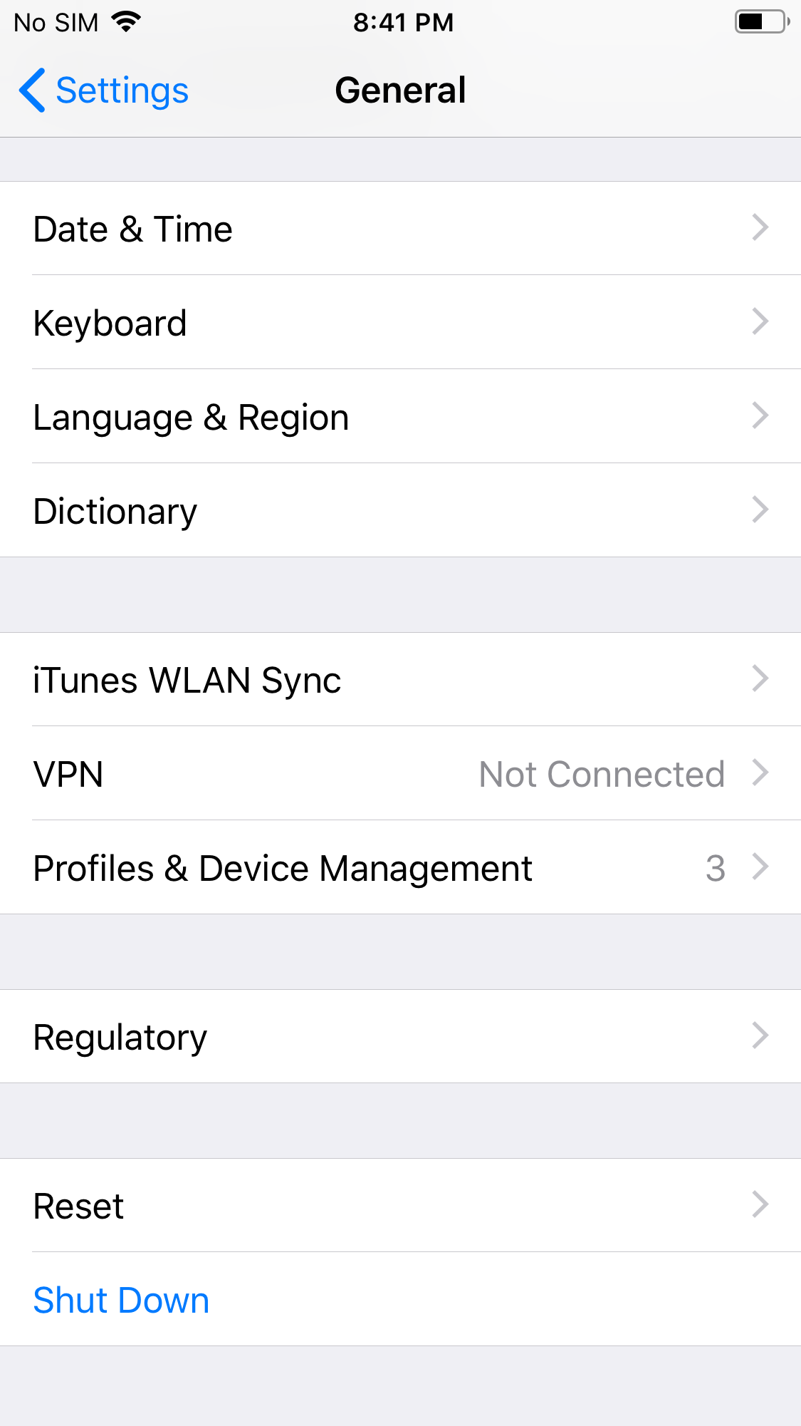 設定」-「一般」-「プロファイルとデバイス管理」に移動します。