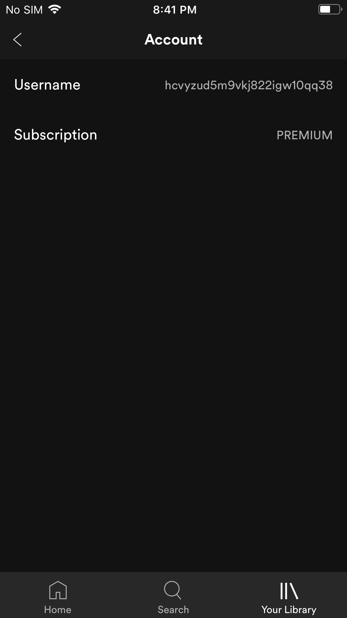 Your Library - Accountをタップすると、PREMIUMアカウントを取得したことがわかります。