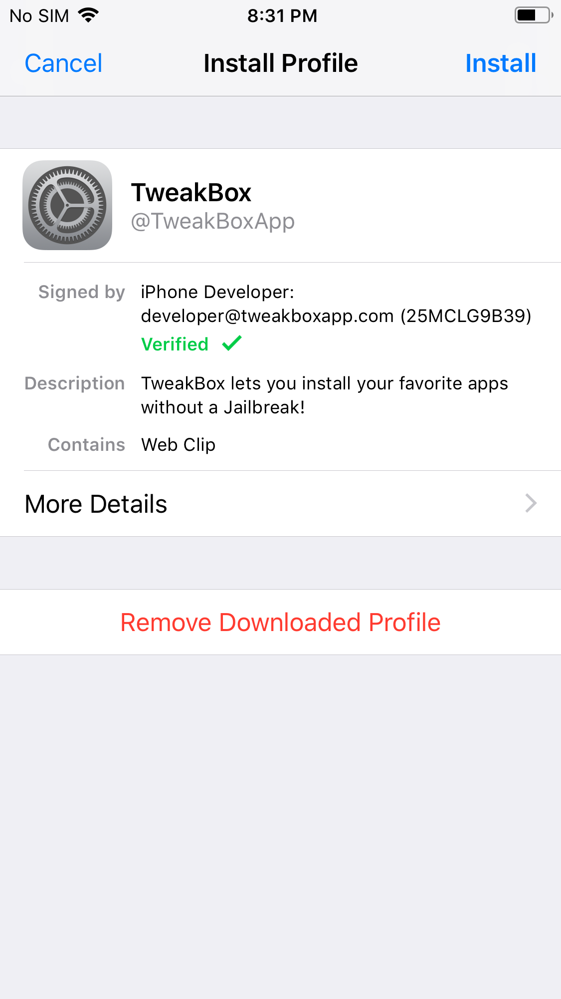Step 4: これでTewakBoxがiPhoneにインストールされました。開いてください。